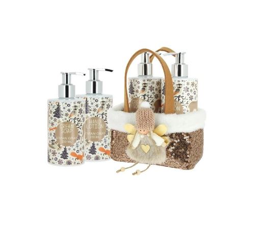 Netradiční, originální dárkový vánoční set obsahuje Tekuté mýdlo a Mléko na ruce.