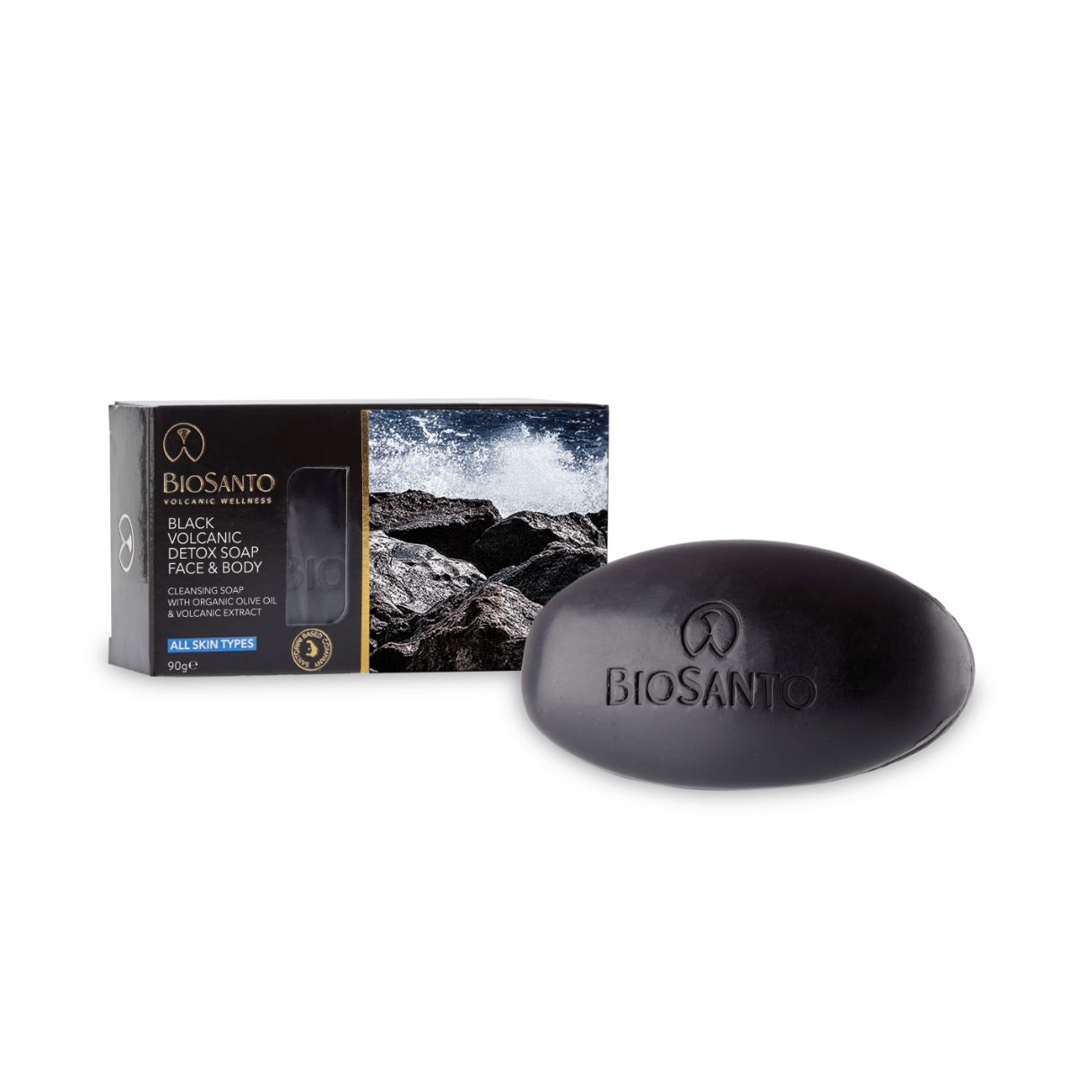 - 16011 BIOSANTO black volcanic detoxikační mýdlo na obličej a tělo 90 g