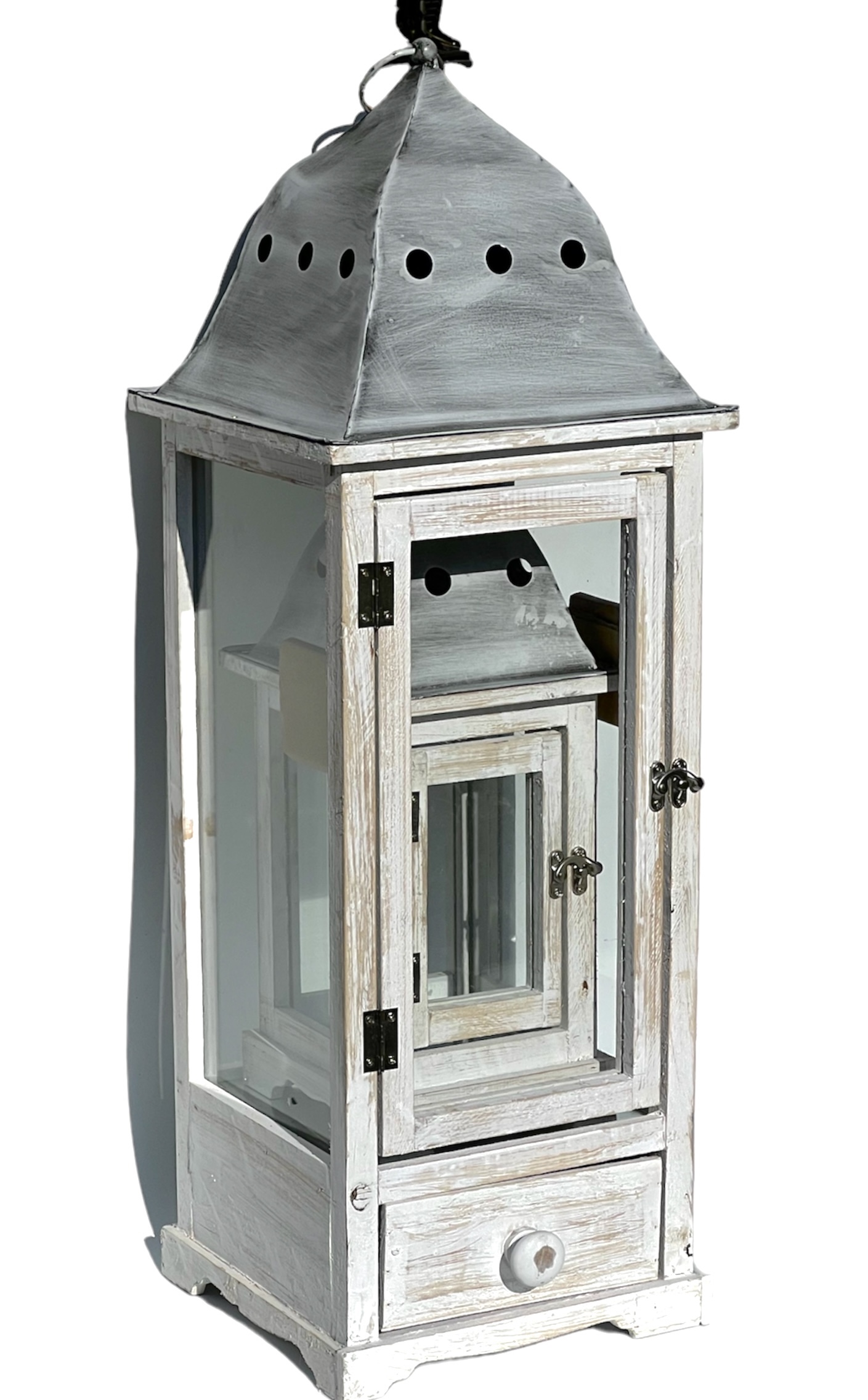 206159 Lucerna bílo šedá 25 x 25 x 78,5 cm - VELKÁ