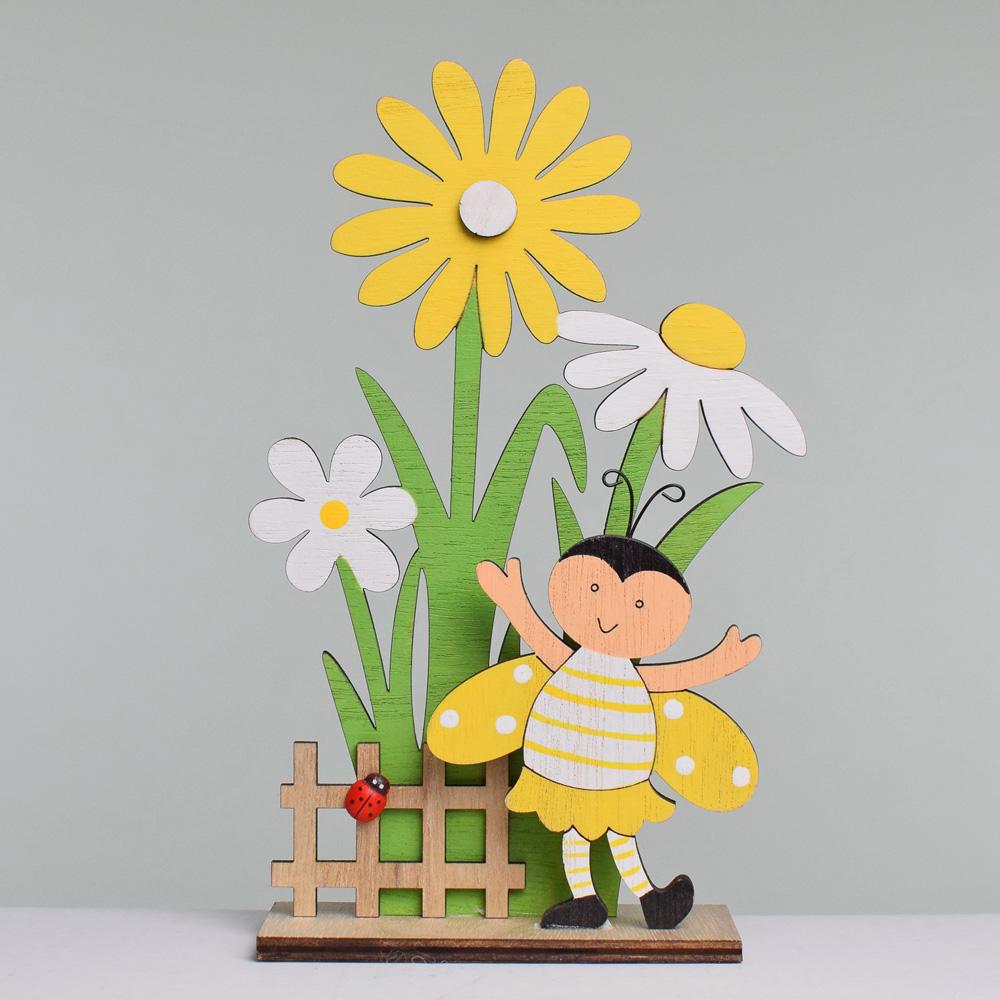 219117 Květ žlutý se včelkou dřevoSkladem 11 ks/ ksbez DPH