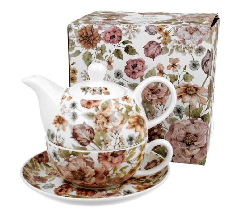Sada „Pastel Flowers Tea for One“ (874) je elegantní porcelánový čajový set 2 v 1, který kombinuje malou konvičku a šálek v jednom romantickém květinovém designu.