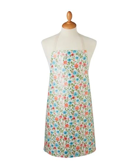 Celkově jde o odolnou PVC zástěru s dekorativním venkovským motivem, ideální pro každodenní použití v kuchyni.