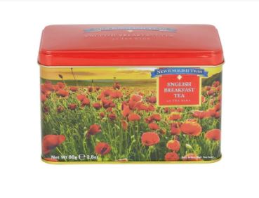 Naše nádherná dóza na makový čaj nabízí krásnou scénu s makovým polem s jemným zlatým embosováním. Tato jedinečná dóza na čaj, která je vysoce sběratelská, obsahuje naše nejprodávanější sáčky anglické snídaně.