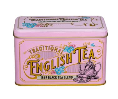 Společnost New English Teas vytvořila tuto plechovku, aby i nadále vyjadřovala poselství viktoriánské sentimentality a štědrosti.