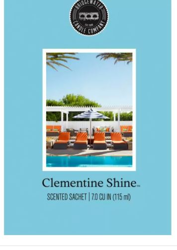 Vůně Clementine Shine překypuje sluncem nasátou klementinkou, pepřem a zelenými bylinami. Zažijte směs smyslných citrusů, dnů strávených u bazénu lemovaných rozmarýnem a pobřeží pokrytá mořskými mušlemi. Vonný sáček Clementine Shine naplněný vonnou směsí nabízí několik možností použití. Můžete jej uložit do šatní skříně a provonět své prádlo, vhodný též do kabelky, auta a podobně. Vysypete-li jeho obsah na podlahu a následně vysajete vysavačem, budete si tuto vůni připomínat při každém dalším úklidu. Vonný sáček lze též doplnit vonnými svíčkami či difuzéry se stejnou vůní z produkce Bridgewater Candles. Popis vůně: hlava – růžový pepř, klementinka, yuzu, srdce: rozmarýn, šalvěj, pomerančové květy, neroli, základ – ambra, mušle, dříví.