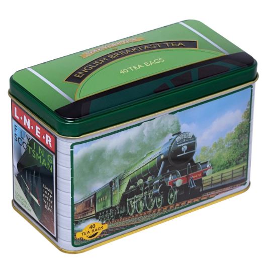 Lokomotiva Flying Scotsman jezdila mezi Londýnem a Edinburghem od roku 1862. Parní vlak je dnes popisován jako nejslavnější parní lokomotiva na světě. Je to užitečný dárek pro pozorovatele vlaků a nadšence do lokomotiv po celém světě a ideální suvenýr s historickým významem. Naše plechovka čaje Flying Scotsman obsahuje 40 našich nejprodávanějších čajových sáčků English Breakfast.